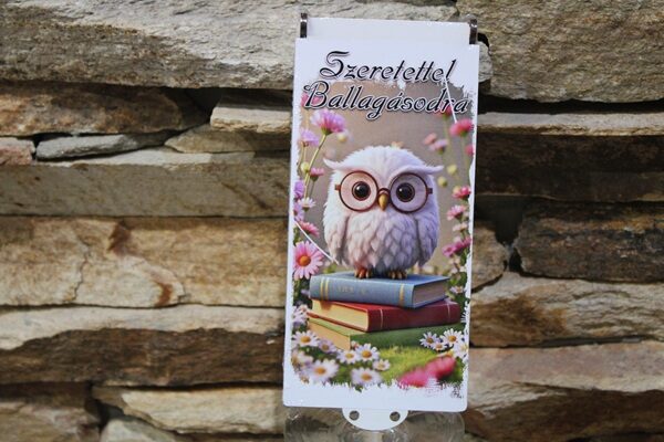 Ez a ballagási pénzátadó bagollyal és könyvekkel nemcsak egy ajándékcsomagolás, hanem egy kedves emlék is, amely hosszú ideig megőrzi a ballagás hangulatát.