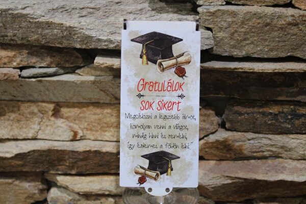 Ballagási pénzátadó doboz talársapkával és idézettel – „Gratulálok, sok sikert!”