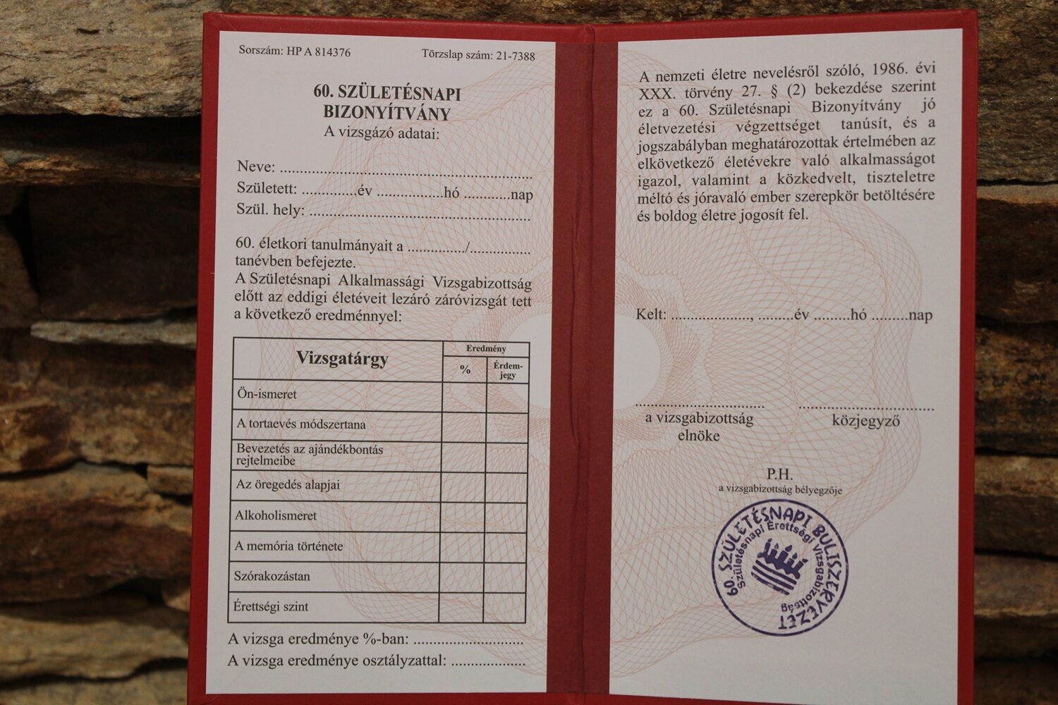 Bizonyítvány – 60.szülinap –