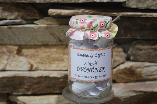 Köszönd meg az óvónő gondoskodását egy igazán különleges és szívhez szóló ajándékkal! A „Boldogság befőtt” egy kreatív meglepetés, amely tele van kedves üzenetekkel és pozitív gondolatokkal.