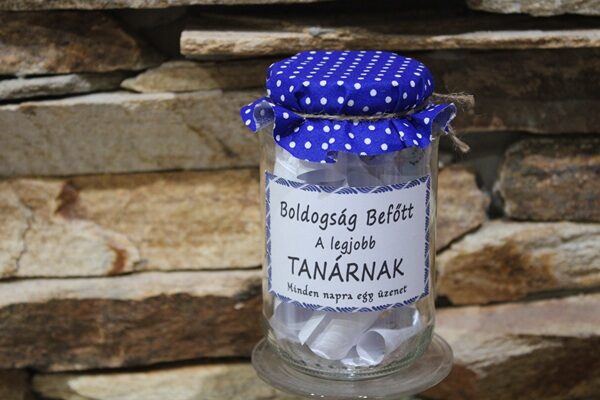 Lepd meg kedvenc tanárodat egy igazán egyedi és szívhez szóló ajándékkal! A „Boldogság befőtt” egy kreatív meglepetés, amely tele van apró, szeretettel írt üzenetekkel és kedves gondolatokkal.