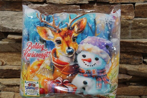 Díszpárna – Boldog karácsonyt -(hóember,őzikével)