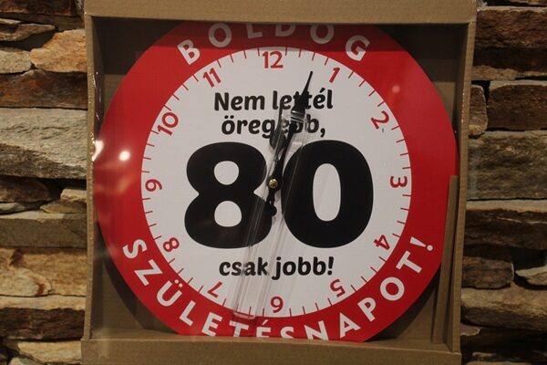 Ez a falióra nagyszerű dekoráció a buli helyszínére, és tartós emlék is, amely akár évekig ott lehet az ünnepelt otthonában. Praktikus, humoros, szerethető ajándék mindenki számára, aki most tölti be a 80-at.