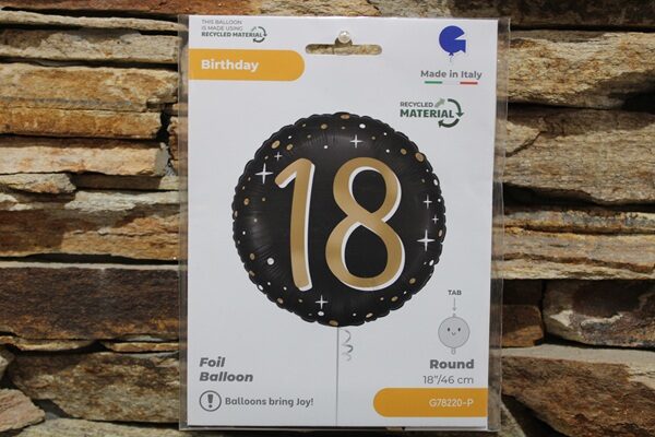 Ünnepeld az élet egyik legnagyobb mérföldkövét, a 18. születésnapot ezzel a lenyűgöző fekete-arany fólia lufival! 🥂 A 43 cm-es, elegáns és modern dizájnú lufi tökéletes választás, ha stílusosan szeretnéd feldobni a nagykorúvá válás partiját.