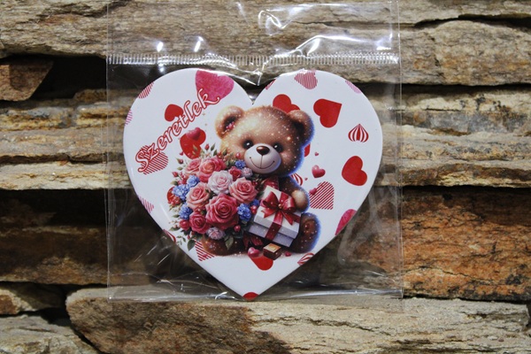 Hűtőmágnes - Valentin-nap - maci virágcsokorral - mennyiség
