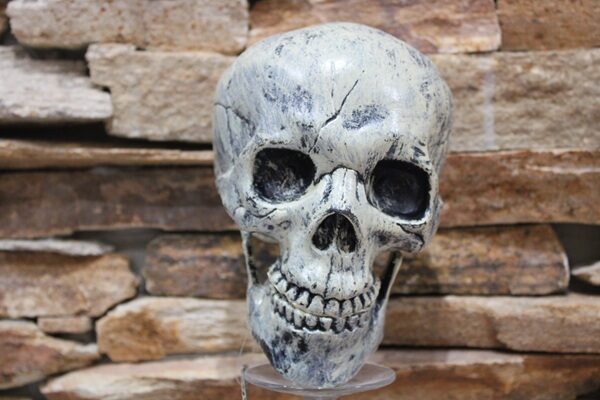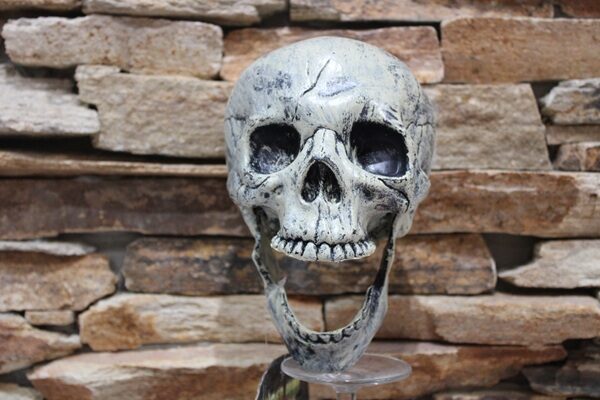 Tedd igazán hátborzongatóvá a Halloween hangulatot ezzel az élethű mű koponyával! A részletgazdag kidolgozás, a repedések és az árnyékolás valósághű megjelenést kölcsönöz, így tökéletes kellék asztaldísznek, polcra vagy akár kültéri dekorációnak is. Ideális választás Halloween bulikhoz, tematikus dekorációhoz vagy színpadi kelléknek.