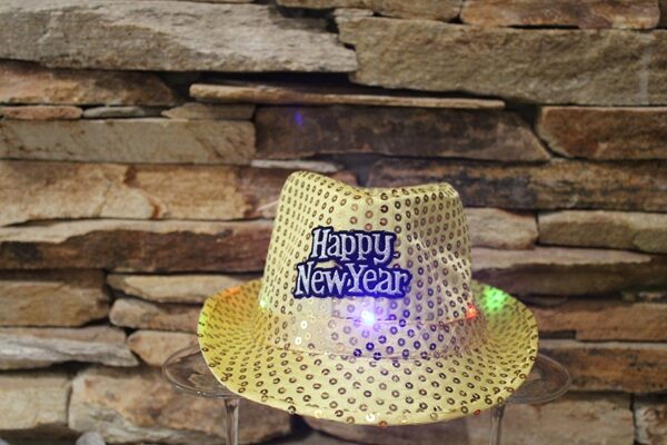Dobd fel a szilveszteri hangulatot ezzel a sárga színű, arany flitterekkel díszített LED-es szilveszteri kalappal, amelyen a klasszikus „Happy New Year” felirat kapott helyet. A beépített LED fények többféle villogási módban világítanak, így garantáltan feltűnő és vidám kiegészítője lesz bármilyen évbúcsúztató bulinak.
