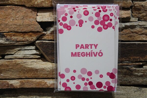 Dobd fel az ünnepre hívást ezzel a vidám és modern rózsaszín pöttyös party meghívó szettel, amely tökéletes választás lányos szülinapokra, gyerekzsúrokra vagy bármilyen vidám hangulatú bulira! A csomag 6 darab meghívót tartalmaz, élénk rózsaszín buborékmintával és letisztult „PARTY MEGHÍVÓ” felirattal.