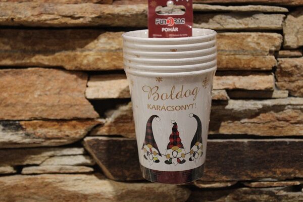 Papírpohár – Boldog Karácsonyt – manós -6 db/cs, 250 ml