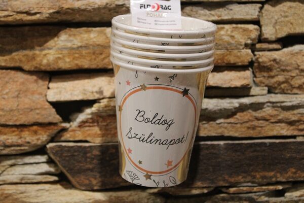 A „Boldog Szülinapot!” feliratú papírpohár elegáns, mégis vidám kiegészítője minden születésnapi ünneplésnek. Letisztult designja miatt gyerek- és felnőtt bulikra egyaránt tökéletes választás.