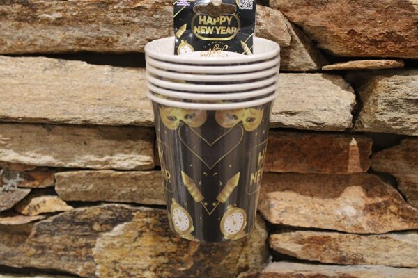 A csomag 6 darab papírpoharat tartalmaz, amelyek praktikus, egyszer használatos megoldást nyújtanak szilveszteri bulikhoz, házibulikhoz vagy családi összejövetelekhez. Könnyű kialakításuknak köszönhetően kényelmesen használhatók, miközben stílusos kiegészítői az ünnepi asztalnak.