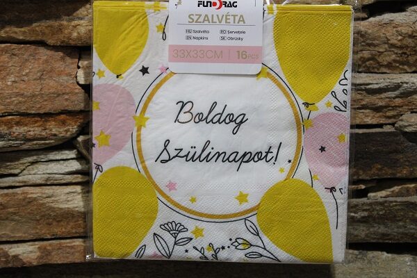 Elegáns lufis szalvéta „Boldog Szülinapot!” felirattal.