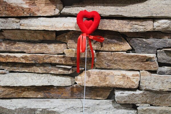 Pálcás bársonyszív Valentin-napi dekoráció –