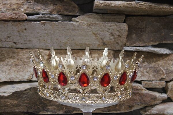 Ez a 14 cm átmérőjű prémium fém korona igazán látványos, elegáns dekoráció különleges alkalmakra. A gazdagon díszített, csillogó kövekkel kirakott korona luxus megjelenést biztosít, így tökéletes választás ünnepi eseményekhez.