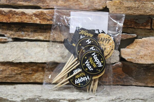 Varázsold ünnepivé a falatokat ezekkel a stílusos Happy New Year pálcikákkal! Tökéletes süteményekhez, snackekhez és party asztalokhoz.