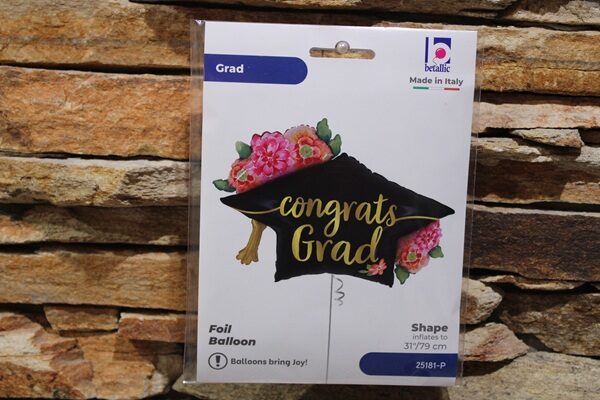 Ünnepeld a ballagást stílusosan ezzel az elegáns, talársapka formájú fólia lufival! A fekete alap és a rózsaszín virágminták különleges, nőies megjelenést adnak, míg a „Congrats Grad” felirat tökéletesen illik az alkalomhoz.