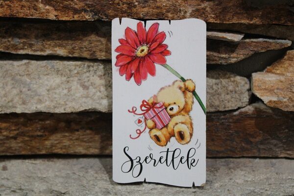 Ez a macis hűtőmágnes Valentin napra igazán kedves és szívmelengető meglepetés. A virágot tartó, ajándékos mackó és a „Szeretlek” felirat tökéletesen közvetíti az érzelmeket – egyszerre aranyos és romantikus.