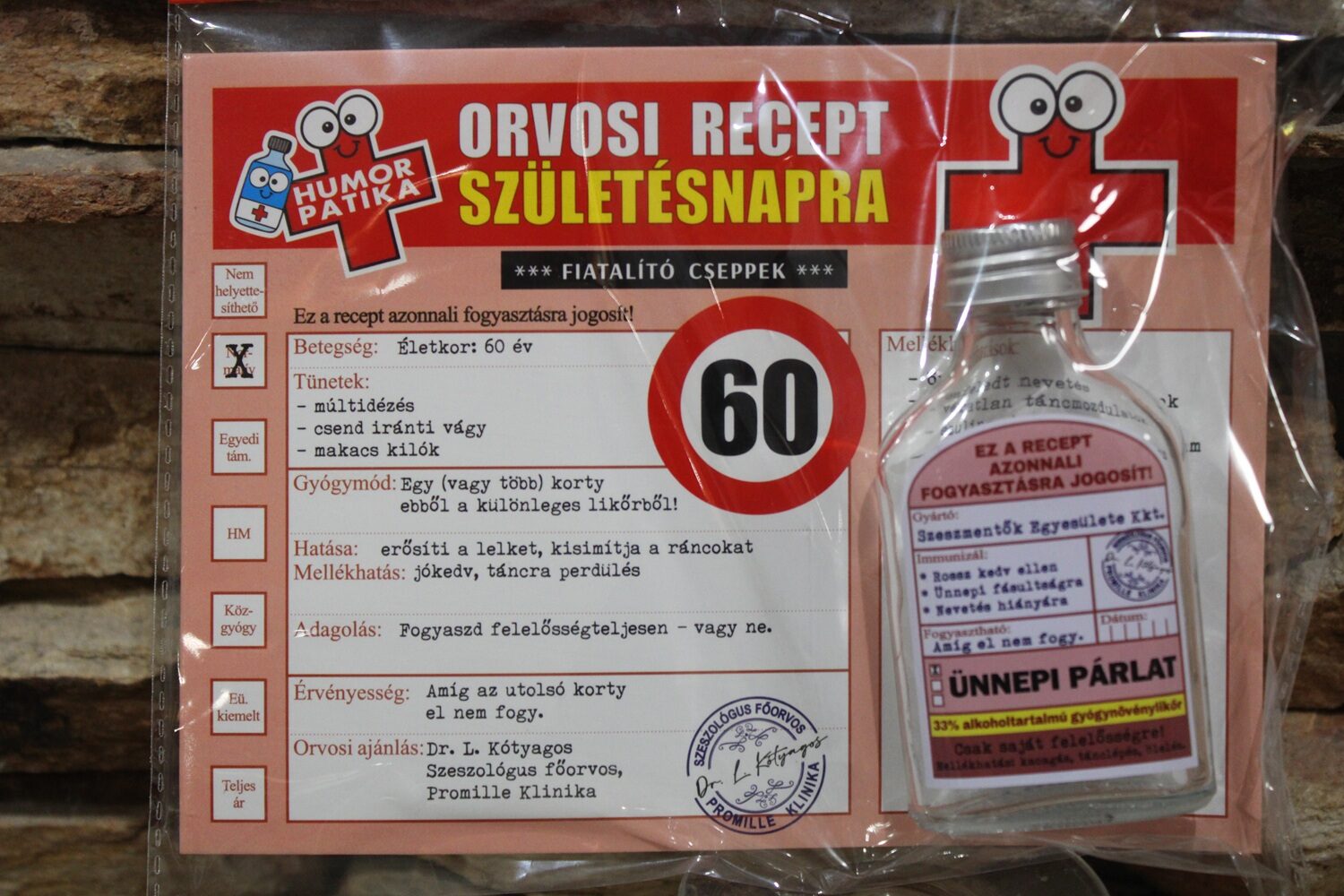 😂 Vicces orvosi recept ünnepi párlattal – 60. születésnapra
